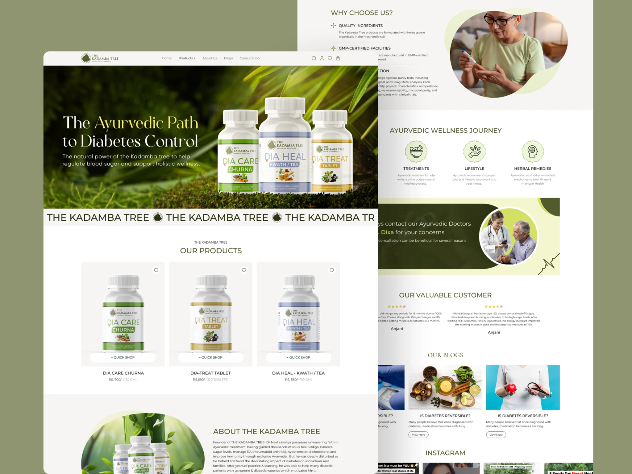 TheKadambaTree is an Ayurveda-focused e-commerce website designed to showcase natural and wellness-based products inspired by traditional Ayurvedic practices. The platform allows customers to explore a wide range of herbal products that promote healthy and balanced living.